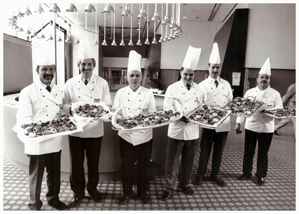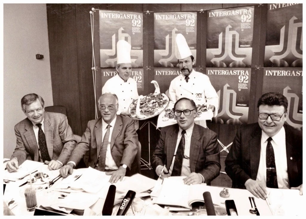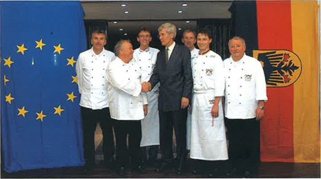 Von Anfang an setzte sich die 1956 von Küchenmeister Otto Schütz gegründete Meistervereinigung Gastronom dafür ein, die Kochkunst Baden-Württembergs auch im Ausland zu präsentieren. Zwischen 1972 und 1984 leitete ich als Präsident im Auftrag der Landesregierung die kulinarische Betreuung von Gastauftritten heimischer Industrie- und Agrarprodukte. Gemeinsam mit Walter Allinger, Hans Könneke, Heinrich Koch und Adolf Burgtaler bereisten wir ganz Europa: …
