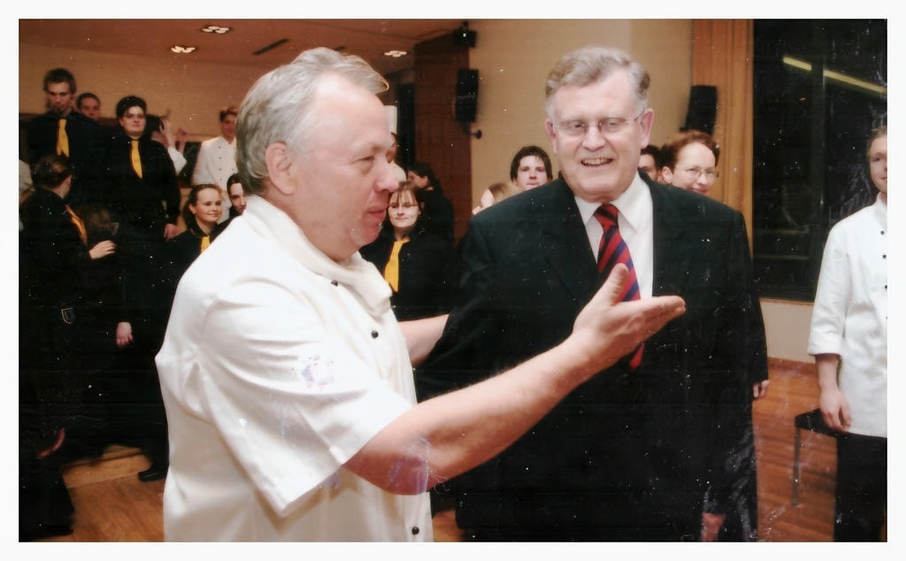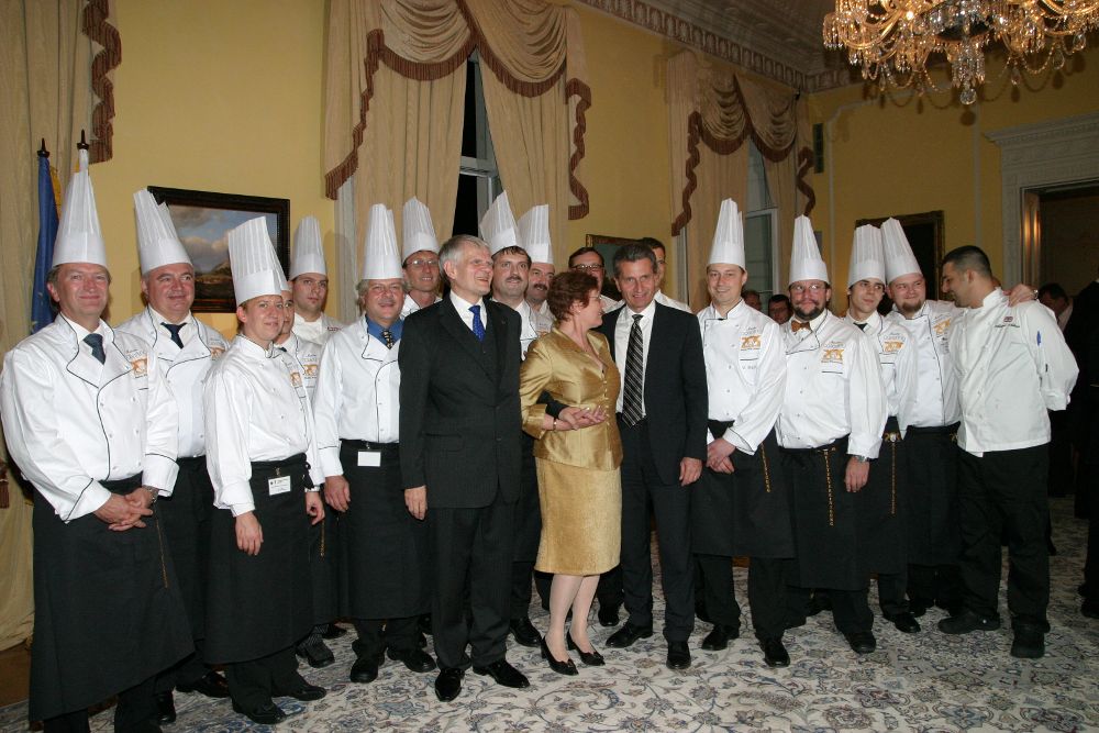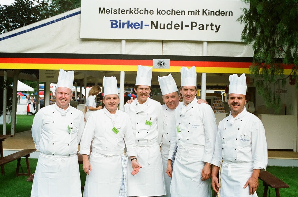 Mit Meisterküche bei prominenten Veranstaltungen hat sich die MVG schon früh einen guten Namen gemacht und viel für das Ansehen des Kochberufs getan. Erich Stradinger berichtet von einem solchen imagefördernden Einsatz in Bonn. Bei einem großen Event in den 90er Jahren waren Mitglieder der Meistervereinigung zum Präsentieren und Kochen im ehemaligen Bundeskanzleramt in Bonn aktiv. Mit Unterstützung eines großes Nudelherstellers …